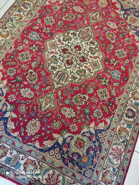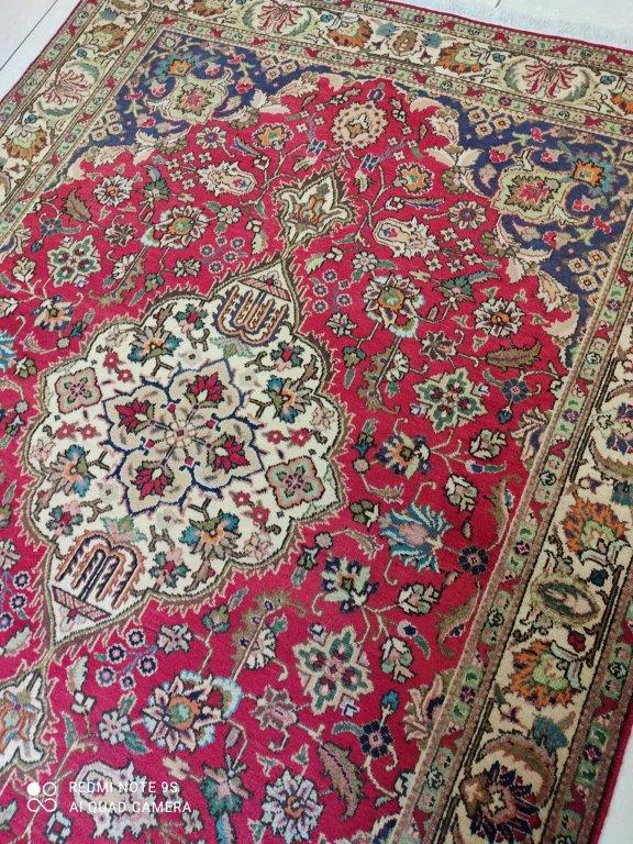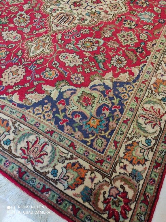 Les Tabriz sont richement ornés d’élégantes arabesques et de fleurs entrelacées, qui tendent à couvrir toute l’étendue du champ. Les fonds sont rouges, bleus ou ivoire, souvent en teintes subtilement dégradées. Tabriz est aussi célèbre pour ses tapis-tableaux. Les quatre saisons sont un thème populaire, mais aussi les palais…Parfois, ils comportent le portrait des quatre plus grands poètes persans, Ferdossi, Hafez, Saadi et Omar Khayyam…