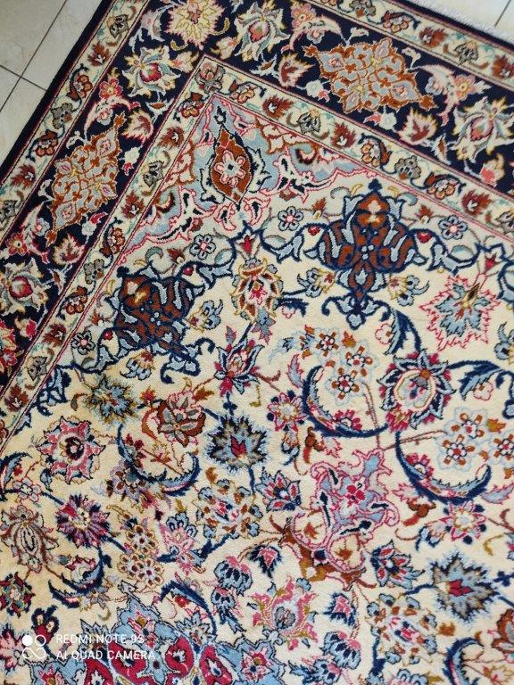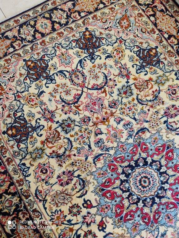 Les adroits ouvriers de la ville lui rendirent rapidement sa réputation. Ils produisent maintenant des tapis délicats aux dessins finement travaillés et aux teintes harmonieuses. Les motifs symétriques dominent, de même les oiseaux, l’arbre de vie, les « mihrab » et les vases. La rose est l’emblème des habitants d’Ispahan. La matière est tondue court pour mettre en valeur la complexité du dessin.